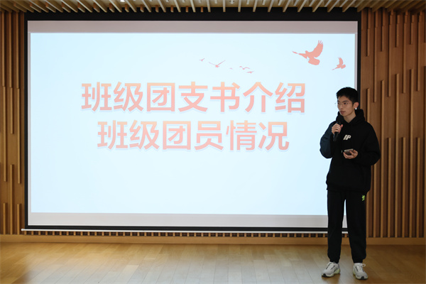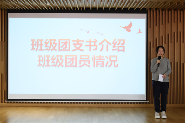 2503班团支书丁妍、2504班团支书钱奕宇先后上台汇报团支部建设情况。丁妍介绍,2503团支部20名成员中8人为入党积极分子,团员们积极参与校级运动会、钱学森图书馆及一大会址参观等活动,在实践中感悟党的历史与使命。钱奕宇表示,2504团支部已完成23名团员组织关系转接,通过联合团日活动凝聚共识,未来将持续深化团组织建设。