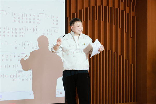 金翼老师带来《祖国不会忘记》的声乐指导课程。他首先讲述了歌曲背后的故事:歌曲创作源于东方红一号卫星研制团队等默默奉献的建设者,诠释了“舍小家为大家”的家国情怀。结合自身专业经验,金翼老师从歌曲背景、情感表达、发声技巧三方面展开教学,引导大家以“踏步前进”的气势诠释“在茫茫人海里,我是哪一个”的谦逊,以坚定有力的音色传递“祖国不会忘记”的信念。