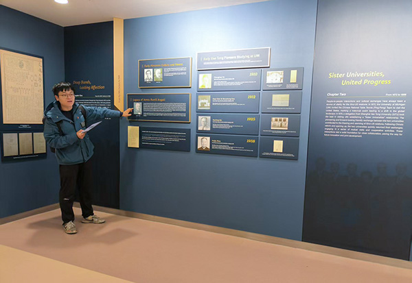 参观结束后,全体成员返回学校龙宾楼,支部党员在浦江国际学院院史展示区进行了学习。四支部党员江明信进行了院史的讲解。讲解围绕学院的发展历程与国际化办学特色展开,重点回顾了学院在中外合作办学领域的探索与实践,以及在新形势下为拓展国际教育交流所作的努力。通过现场讲解与展陈观摩,同志们进一步加深了对学院国际化办学使命与文化传承的理解,凝聚了传承办学精神、服务学院高质量发展的共识。